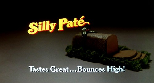 ...nourriture rigolote (référence au Silly Putty, un jouet hyper-populaire dans l'Amérique des années 50). De faux spots publicitaires qui raillent nos habitudes d'Homo sapiens post-modernes obnubilés par les joujoux colorés du consumérisme.