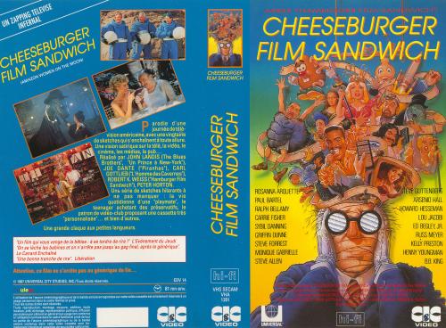 Comme souvent chez des réalisateurs comme Dante et Landis, le ton est volontiers à la satire, parfois grinçante mais jamais vulgaire, s'attaquant essentiellement aux mondes des médias, de la pub, du cinéma et aux travers de nos comportements sociaux, avec un sens certain de l'auto-dérision. Signalons que ce refus systématique de se prendre au sérieux est magnifié par une VF complètement déjantée, tout à fait dans l'esprit de l'oeuvre, où l'on retrouve la fine fleur des doubleurs 80's qui semblent tous s'en être donné à coeur joie (mais... pourquoi avoir renommé le personnage de Henry Silva "Jean-Roger Silva" ???). Iconoclaste, absurde, délirant, unique, psychotronique et indiscutablement plus fort que du roquefort, « Cheeseburger film sandwich » reste un petit bijou dont l'éclat devrait séduire le néophyte autant qu'il ravit les cinéphages et les télévores les plus endurcis.