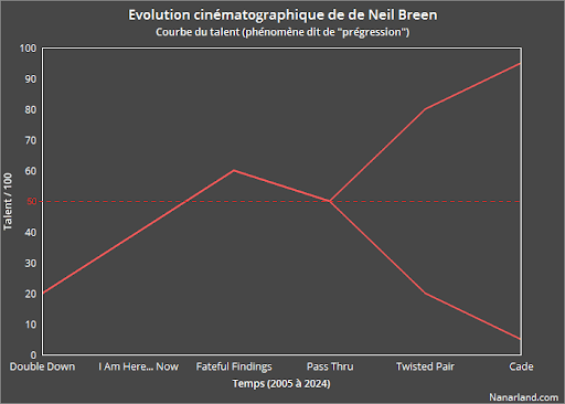 Cumulez tout ça et vous arrivez à une filmographie de derviche tourneur. Comme s'il était pris dans un piège spatio-temporel digne d'une nouvelle de Philip K. Dick, Neil Breen refait le même film en boucle, toujours un peu moins bien.
