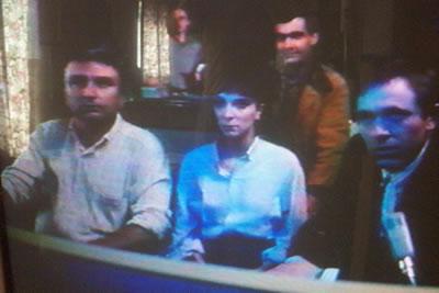 Ecoeuré par cette injustice mais également par les jalouseries de ses petits camarades boxeurs, Stéphane raccroche les gants et devient garde du corps. Nous le retrouvons ainsi un an plus tard, veillant à la sécurité de Robert-André Vivien (1) lors d’un meeting RPR pré-législatives 86. Et c’est ici que le plus beau de la galerie défile et que le placement du produit politique bat son plein : nous voyons successivement apparaître à l’écran le susnommé Vivien, puis Toubon, Alliot-Marie, Pasqua, Seguin et Jacques Chirac !