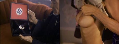 Mais pour varier les plaisirs, Sidaris s’est aussi attaché les services d’une nouvelle tête d’affiche. Et quelle tête ! En lorgnant très ouvertement vers l’espionnage, le nouveau film d’Andy ne pouvait que s’offrir un James Bond ! Enfin, le fils d’un gars qui a joué James Bond (ce qui, avouons-le, n’est pas plus absurde qu’embaucher le frère de Sean Connery dans « Opération frère cadet »). En l’occurrence, le rôle de la caution vaseuse sera endossé par Geoffrey Moore, fils de Roger et renommé R.J pour l’occasion, histoire d’enfoncer un peu plus le clou. Jouant son rôle de façon détachée, « comme son père » diront les mauvaises langues, Geoffrey passe surtout son temps à bronzer sur un yacht en galochant tout ce qui passe. Car il faut bien le dire, s’il est censé être le grand méchant que devront affronter nos héros, Moore Junior n’en a proprement rien à péter, se trimballant dans le décor comme un touriste visiterait le plateau de tournage. Ce qui était sans doute le cas, le bon Geof n’ayant que vaguement, et vainement, tenté de faire carrière dans la comédie. Il n’empêche que voir ce qu’on nous présente comme un charmeur et dangereux trafiquant être joué avec la même décontraction qu’un personnage de sitcom à de quoi susciter un réel amusement, l’estocade nous étant portée dans une brève séquence de rêve où Geoffrey s’imagine dans la peau du plus célèbre des agents secrets. En l’état, on peut donc s’estimer heureux que les producteurs de la plus célèbre saga d’espionnage n’aient pas eu l’idée aberrante de lui confier la succession de Pierce Brosnan, comme certaines rumeurs le laissaient entendre à l’époque.