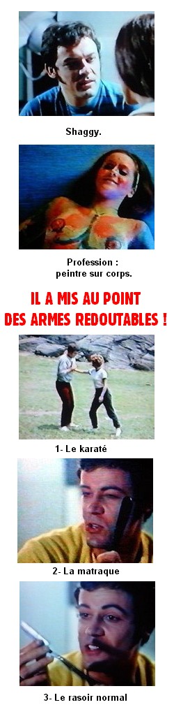 Mais le plan de LA VENGEANCE va réellement prendre forme lors de la visite de Betty à Shaggy, alias l'homosexuel qui aimait les femmes (à l'image du film, son orientation n'est pas trop claire), un copain photographe et peintre sur corps très influencé par l'œuvre graphique de Gérard Jugnot. Shaggy va entraîner Betty au karaté (3 minutes de roulades grotesques dans Central Park) et lui conseiller les armes absolues nécessaires à LA VENGEANCE : une (ridicule) matraque et un rasoir (normal).
