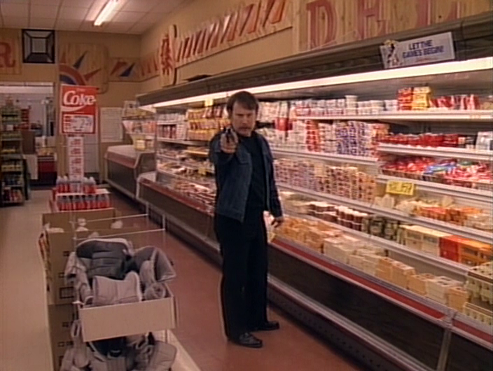 Steve incarne Richard Flynn, le flic le plus badass de la planète, doublé d'un escrimeur accompli et du seul homme à pouvoir sauver l'Humanité contre les Forces du Mal. En témoigne cette fusillade assez minable dans un supermarché, repompée sur la scène d'ouverture de Cobra, au cours de laquelle un malfaiteur, venant d'abattre froidement deux clientes au fusil à pompe, prend en otage une enfant. Steve/Richard montre à tout le monde, à commencer par le malfaiteur, que ses burnes sont forgées dans l'acier le plus pur, avant de loger une bastos dans la face du vilain. Bien aidé cela dit par la diversion d'un faire-valoir, sans qui on se demande bien comment les évènements auraient tourné à l'avantage de notre héros, aussi sûr de lui soit-il. Remplacez les cent kilos de muscles de Stallone par les cent kilos de surcharge pondérale de Steve Barkett et vous aurez une idée du ridicule de notre héros. Mais qu'importe, aux yeux de Steve Barkett, son ventre tout mou ne l'empêche pas d'être sexy : toutes les femmes du film lui tombe dans les bras et rêvent d'embrasser la moustache d'un amant aussi viril. Les jeunes rêvent de l'avoir pour père, quand bien même il les repousse comme un tas de crotte. Face à un héros de sa trempe, Satan et tous ses sbires ne peuvent faire le poids.