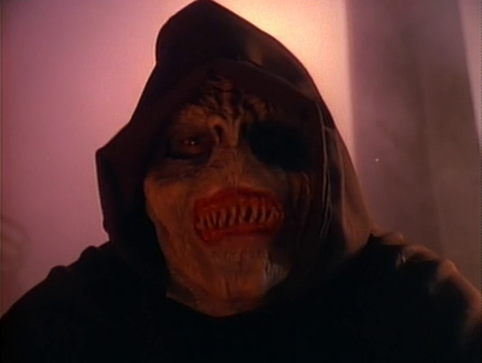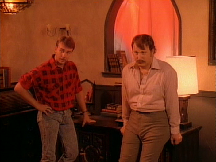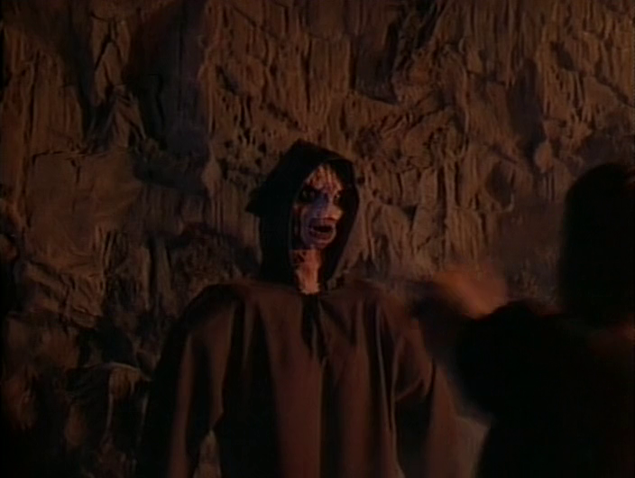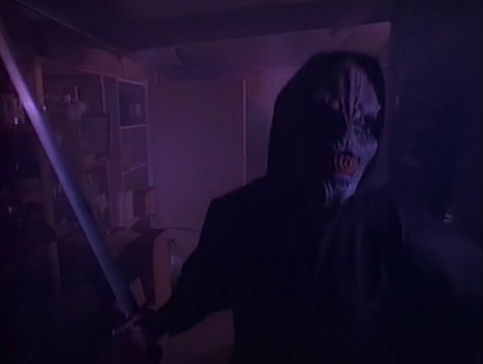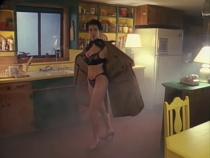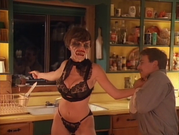 Autre exemple de stéréotype du cinéma fantastique rendu involontairement burlesque par des effets spéciaux low cost : la scène où le jeune Christopher Barkett, censé monter la garde face aux démons, se fait séduire par une succube à gros nichons venue faire irruption en sous-vêtements dans sa cuisine. Outre la bêtise du jeune godelureau (mais on pourra toujours mettre ça sur le compte de ses hormones), la séquence, vue des centaines de fois ailleurs, est ringardisée lorsque l'appétissante succube révèle son vrai visage : un masque d'Halloween trouvable pour trois dollars dans n'importe quelle boutique de farces-et-attrapes. Là, c'est quand même un peu la dèche. Et c'est pour ça que c'est aussi bon.