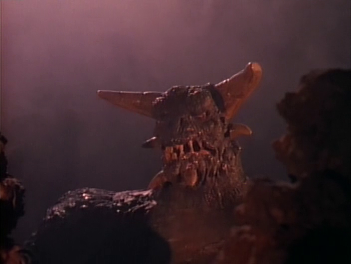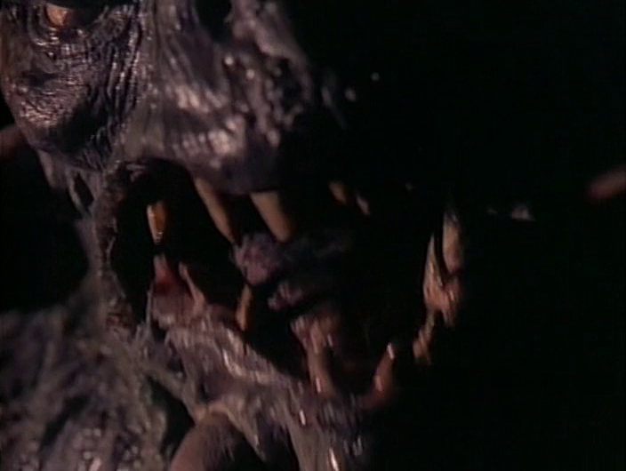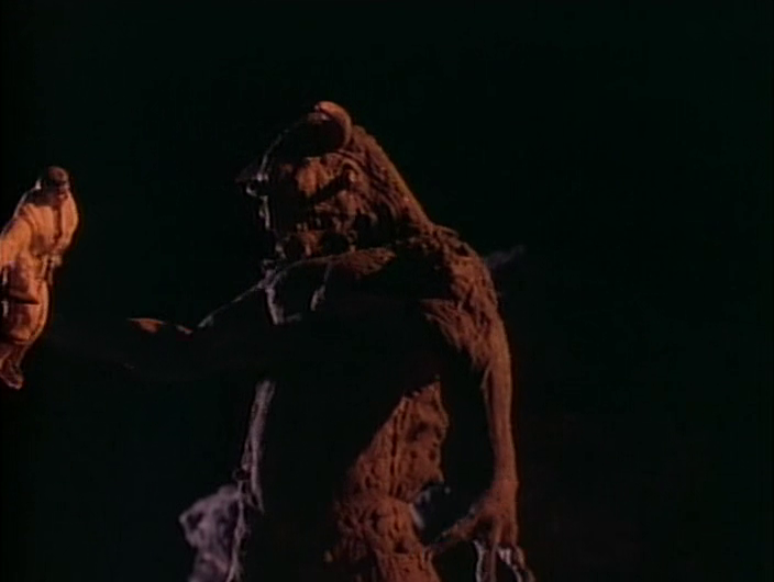 Semblant dater des années 1970, ce DTV de l'aube des années 1990 rend un hommage nostalgique aux vieux films d'aventure fantastique, et se signale comme une bisserie particulièrement généreuse et distrayante, malgré son manque criant de budget et la mise en scène assez plate de Steve Barkett, qui s'efforce cependant de réaliser un film de genre total à base de grand spectacle en carton. Avec son emphase rappelant les BO de Bernard Hermann et de John Williams, la jolie musique orchestrale de John W. Morgan semble parfaitement décalée vis-à-vis de la pauvreté qui s'étale à l'écran, mais confère un indéniable charme rétro à l'ensemble. Malgré de très beaux matte paintings, une ambiance visuelle plutôt soignée et la présence de techniciens des effets spéciaux chevronnés (qu'on retrouvera au générique de nombreux blockbusters), les SFX fleurent bon le bricolage nanar, sans doute par carence de moyens et de temps. En témoigne cette séquence nocturne où deux jeunes s'embrassent dans leur voiture garée au milieu des bois. La fille manifeste son inquiétude car elle a entendu un bruit. Le mec lui dit que ça doit être un lapin ou un écureuil. On a vu cette scène des centaines de fois dans les films d'horreur nazes. Là où le film nous surprend, c'est que la voiture se transforme alternativement en automobile miniature toute mimi, et le monstre géant est tantôt une figurine en pâte à modeler animée en stop-motion rudimentaire, tantôt une marionnette à main filmée en très gros plan.