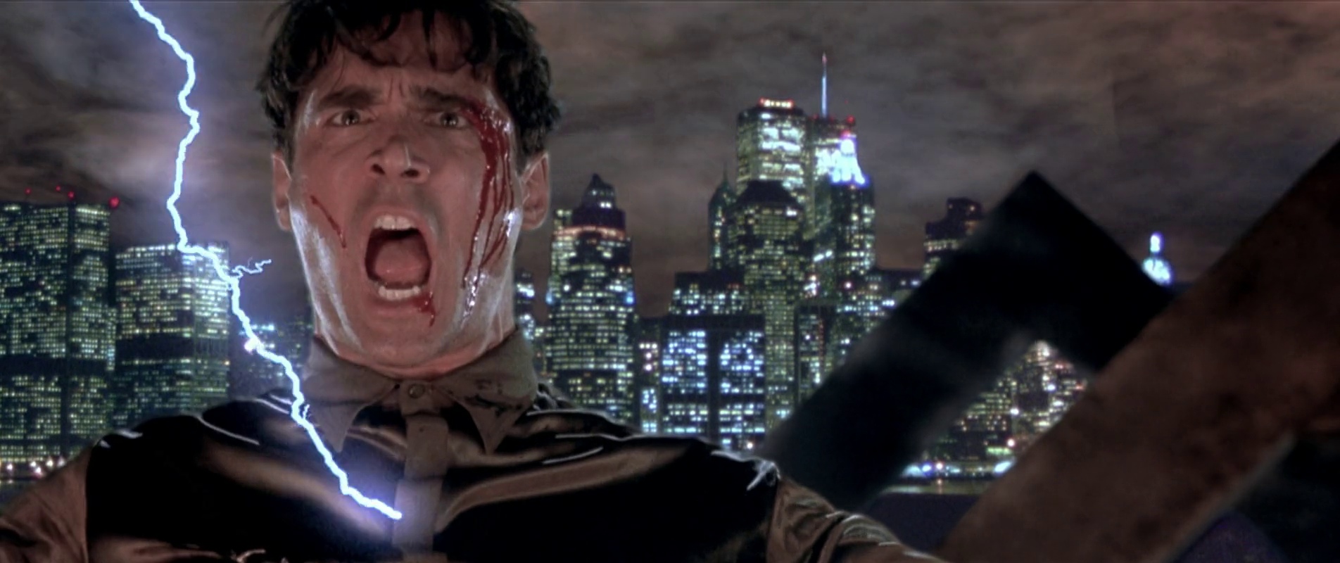 Et enfin, il y a Bruce Payne, qui est véritablement LA Star du film. Que dire si ce n'est que tout transpire en lui le cabotinage extrême et ce de manière constante. Je comptais prendre des caps de toutes ses meilleures expressions mais je me suis limité à un best of restrictif d'une courte scène dans un cimetière.