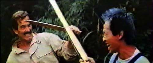 Une violence sordide, volontiers arrosée de gros rouge qui tache et que distillent les scènes que n'a pas tournées Godfrey Ho, c'est-à-dire celles piquées à un film obscur que notre collègue espagnol Jesus Manuel Perez Molina a identifié comme étant une co-production entre Taïwan et le Corée du Sud datant de 1983, et connue sous le titre "Grudge of the Sleepwalking Woman" ("Mongnyeohan" en coréen).