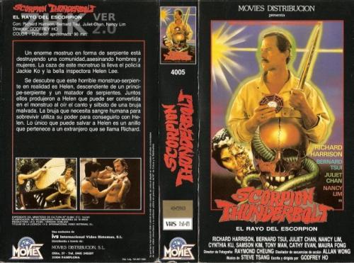 Pour voir Scorpion Thunderbolt en VF, il faut sinon arriver à mettre la main sur une des éditions VHS d'époque, chez Moonlight Productions sous le titre "Snake", ou celui de "Scorpion Thunderbolt" chez BM Productions ou Magical Moments (il s'agit en fait du même éditeur). Une fois n'est pas coutume, le film est proposé dans son format d'origine (CinemaScope 2,39:1), alors que les versions espagnole, grecque, japonaise etc. sont toutes recadrées en 4/3.