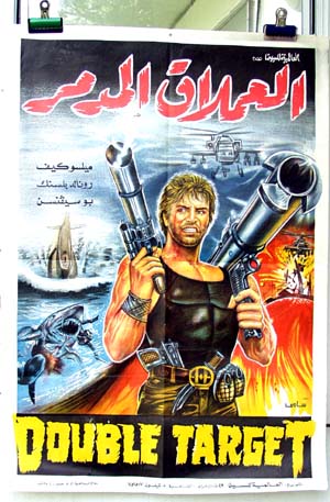 Et il faut bien dire que « Double Target », dès que l’on connaît cet aspect du tournage, prend une toute autre dimension. Série B fauchée au coefficient de grotesquerie moyennement élevé, le film pouvait constituer un spectacle gentiment délassant pour le nanardeur fatigué. Mais la non-prestation absolue de Miles O’Keeffe le rend tout simplement autre : si l’on est au courant et une fois qu’on a repéré le truc, impossible de rater cette dimension du film. Malgré sa grande photogénie, O’Keeffe est le héros le plus inactif de toute l’histoire du cinéma d’action, une sorte de Roger Moore qui n’aurait même pas l’excuse d’être vieux ! Doublé dès qu’il doit ouvrir une porte, Miles O’Keeffe se contente de donner quelques claques au méchant lors du combat final et de faire semblant de tirer avec un bazooka qu’il porte sur son épaule. Au-delà, rien, niet, nada : c’est le personnage du sidekick qui fait tout, les bastons en gros plans, les cascades en plans moyens. Pire que Vadinho dans « L’Homme Puma ». Et pour les cascades filmées de loin, c’est encore l'acteur interprétant le sidekick, puisque O’Keeffe ne daigne rien faire lui-même !