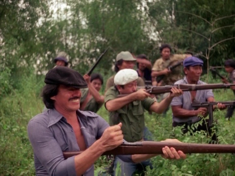 Evacuons tout de suite la partie asiatique du métrage, qui occupe tout de même près des trois-quarts de l’histoire. C’est un film de guerre philippin, parfaitement cohérent pris tout seul, mais qui se veut malheureusement à la fois terriblement sérieux, patriotique et réaliste. Il nous conte l’histoire de Max, un paysan résistant à l’occupation japonaise qui fédère autour de lui les gens de son village (lors d'un de ses discours enflammés, on peut entendre la chanson "Mama" du groupe Genesis). Il multiplie ainsi les coups de mains audacieux contre l’ennemi, libérant des prisonniers ou attaquant des colonnes de militaires avec ses partisans. Hélas, une fois la paix arrivée, les beaux idéaux s’envolent et tous ces anciens héros sombrent dans le banditisme ou dans la corruption politique. Max, désabusé, tente de ramener ses amis à la raison, mais sombrant dans l’extrémisme, il devient à son tour un ennemi public. Le film n’est pas foncièrement mauvais, juste très ennuyeux, alignant ainsi quelques combats dans le noir assez peu lisibles et de grandes périodes mélodramatiques où les personnages s’interrogent sur le sens de leur camaraderie perdue.