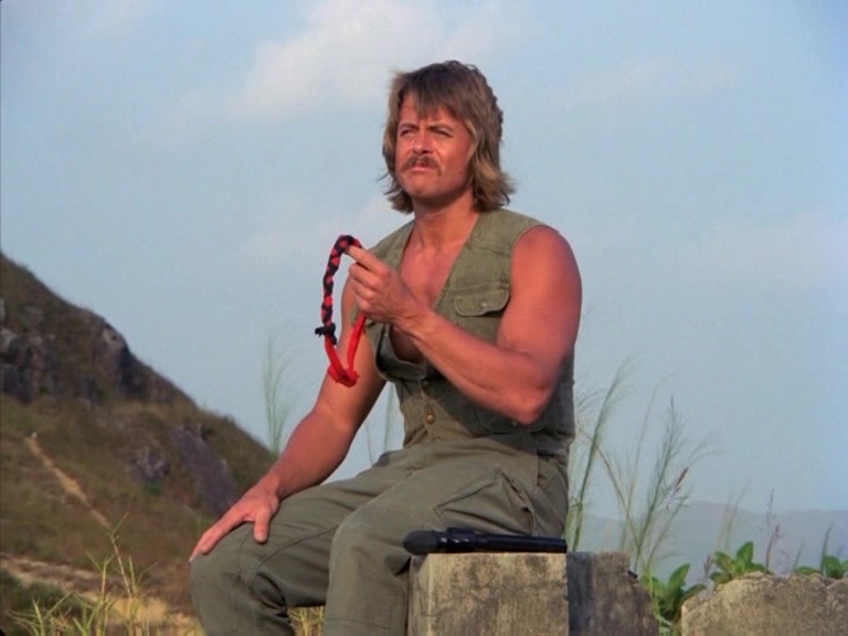 Voici Richard Harrison et Mike Abbott qui jouent à la guerre comme des gamins dans une cour de récré... Et on dirait que tu serais le méchant et on dirait que je serais le gentil et qu’on se cacherait dans un terrain vague. Hélas, trois fois hélas ! Le reste du film est loin d’être à la hauteur de ces scènes hallucinantes. Il s’agit pourtant d’une de ces productions rafistolées façon créature de Frankenstein par Godfrey Ho. Toutefois pour notre malheur, les parties gweilos de ce "deux en un" sont malheureusement extrêmement réduites.