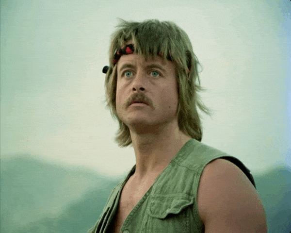Même éparpillées au milieu du métrage philippin, les scènes de gweilos sont de véritables joyaux qui illuminent le film de leur totale irréalité. En effet, plus que dans aucun autre de ses "deux en un", l’ami Godfrey (aussi responsable du scénario) se fiche totalement d’accorder la moindre cohérence à la jonction des deux parties. On saute ainsi de l’un à l’autre sans jamais se soucier de les lier. C’est à peine si au détour d’une phrase, Max, le résistant philippin, lâche qu’il y a quelque part un Américain pour les aider ou, dans la première scène de gweilos, que Roger a vendu des informations aux Japonais. Tout le monde en fait des tonnes, roule des mécaniques, beugle des répliques ordurières ou, facétie nouvelle, a des mouvements de recul outranciers en écarquillant les yeux dès qu’il faut signifier sa surprise. De plus les dialogues sont magnifiés par des doubleurs qui, s’ils sont plutôt sages sur la partie asiatique, mettent tout leur cœur à l’ouvrage dès qu’il s’agit d’en faire des caisses en jouant les bourrins surarmés qui s’apostrophent.