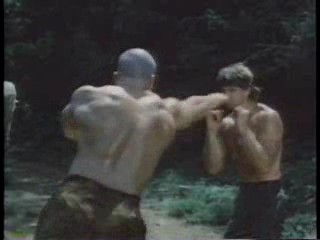 Au cours d'une bataille en règle contre les Vietcongs, nous faisons la connaissance de l'antagoniste de notre héros, le vil officier soviétique Jakoda. C'est pour moi l'occasion de revenir sur le fabuleux comédien qui interprète ce rôle : Alex Vitale ! Autant vous dire qu'à l'heure où j'écris ces lignes, j'ignore tout de cet acteur à la carrière plus que brève, à commencer par sa nationalité. A-t-il été découvert dans un club de culturisme malfamé des faubourgs de Brooklyn, ou dans les rangs des hooligans supporters de l'A.S. Roma ? Peu importe au final, le résultat est là sous nos yeux : épais comme un gorille gonflé à l'hélium, grimaçant, bestial, Alex Vitale est le partenaire rêvé de Reb Brown, dont il sublime le jeu par la simple loi de la relativité !