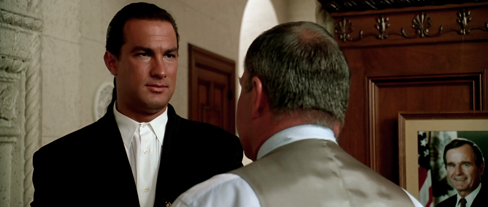 Car là où les films d'action habituels en font baver à leur héros ("Die Hard", "Lethal Weapon"), Seagal, lui, fout la pâtée à tout le monde en trois coups de cuillère à pot sans aucune égratignure. C'est même justement ce qui fait son "charme" : un personnage radical, n'hésitant pas à casser des bras (tout le temps en fait) et à tuer froidement le premier bad-guy venu. A un point tel qu'on a l'impression que Seagal interprète toujours le même personnage invincible et que les scenarii ont été écrits spécialement pour lui.