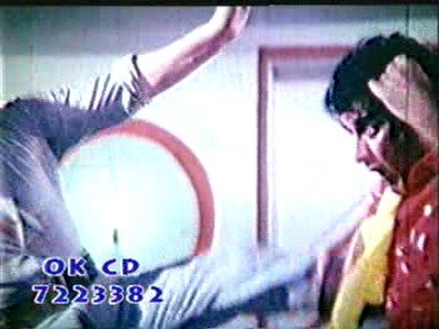 Haseena va donc entreprendre de retrouver ses agresseurs (qui semblent ne plus la reconnaître), de les séduire à l’aide de numéros musicaux éléphantesques, puis de les tuer. Entre-temps, le sauveur moustachu de Haseena et une fille habillée en peau de panthère se fritent avec des membres de la même bande de dealers dans une série de bastons frénétiques et incessantes pour finalement découvrir (d’après ce que nous avons pu comprendre) qu’ils sont en fait frère et soeurs. Le fait que ces deux histoires parallèles n’aient visiblement pas été filmées à la même époque (la comédienne interprétant Haseena intervient bien dans les deux parties du film, mais avec des costumes différents) peut faire spéculer que la partie « viol et revanche » ait été rajoutée pour la version en urdu – nous serions alors en présence d’un véritable 2 en 1 pakistanais, mais la critique que j’ai pu lire semble indiquer qu’il s’agit bien du montage originel. Les pakistanais pratiqueraient donc le mélange de métrages, mais sans le faire exprès.