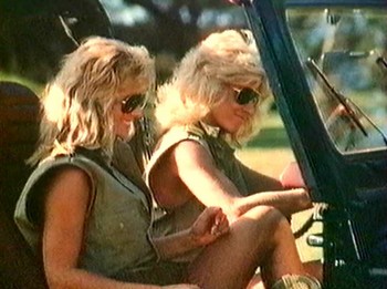 Les deux héroïnes "Dona" et "Karine" sont interprétées par les playmates Donna Speir et Hope Marie Carlton (Paris Hilton c'était déjà pris et Ginette Sofitel, pas assez huppé !) qu'on a bien du mal à distinguer l'une de l'autre au départ - c'est un peu Bimbo et Bimbo cette histoire ! - mais on finit tout de même par y arriver avec un peu de concentration. Je vous donne un truc pour les repérer : Hope Marie c'est celle qui est tout le temps à poil et qui ne sort que des âneries et Donna, c'est celle qui a des gros seins et qui joue mal.