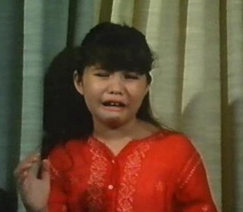 Bah oui, c'était ça ou prendre des stock-shots de « L'Exorciste ». Et puis merde, quoi, aux Philippines, on n'avait pas d'enfant blanche disposée à jouer le rôle de Linda gamine. On fait avec ce qu'on a, zut à la fin ! Heureusement que le film n'a pas été tourné au Cameroun, Alphonse Beni aurait imposé sa fille dans le rôle de Linda enfant en plus de s'attribuer le rôle principal (ce qui aurait été un progrès par rapport à Christopher Mitchum, soit dit en passant).