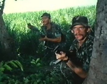 Christopher retourne donc à son boulot pour faire exploser des décors en carton pour un mauvais film de guerre... Le nanar à l'intérieur du nanar, ou le principe de la mise en abyme. Sans doute la production voulait-elle rentabiliser au maximum décors et costumes de l'un de ses films de guerre de prestige (« Ultime Opération Suicide : Mission Cambodge », ou autres titres interchangeables). Cela permet de voir passer d'autres têtes connues du nanar philippin : pour un peu, on se croirait dans le making-of de « Commando Massacre ».