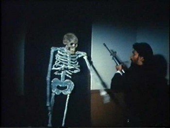 Pris entre deux feux, Baker va patauger stoïquement dans les emmerdes d'un bout à l'autre du film avec autant d'aplomb qu’un caillou dans un verre de Ricard. [NdlR : Dis donc Isatis, tu as conscience que cette phrase ne veut rigoureusement rien dire !] Heureusement, ce Monsieur FX, roi de la bricole, a truffé sa baraque de pièges qui font peur à base de lumière rouge et de squelettes en plastique...