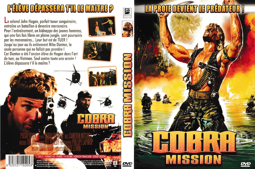Barème de notationPlutôt facile à trouver depuis qu'il a été réédité en DVD par "Prism Vision". Mais attention : il existe à la fois sous son vrai nom, avec la jaquette postée ci-dessous (qui a servi également pour « Laser Force » et « Strike Commando »), mais aussi sous le titre de « Cobra Mission » avec la jaquette et le résumé de « Ultime combat » (et des images de « Strike Commando » dont l'ami Reb Brown derrière... C'est plus une jaquette, c'est un patchwork), sachant qu'il est souvent vendu moins cher sous ce dernier package.