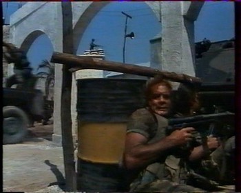 Bien qu’il bouge bien et donne davantage de sa personne que dans « Ator », Miles O’Keeffe demeure fidèle à lui-même : encore une fois, et comme dans « Double Target », c’est son sidekick qui en chie, fait toutes les cascades, saute des toits, latte les sbires en combat rapproché et risque sa peau à chaque scène d’action.