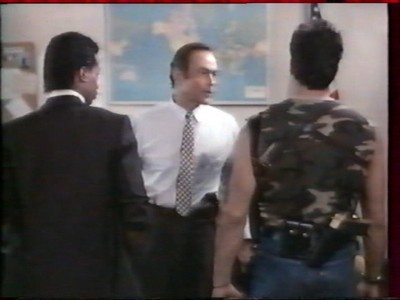 Parmi les éléments relevant de la technique dite de « l’empilement des clichés », nous relevons la présence d’un personnage secondaire noir, chargé de seconder le héros (dans le registre dit du « sidekick ») et d’apporter une touche d’humour. Nous avons pu identifier l’acteur interprétant ce personnage, crédité comme « Jimi B. Jr », comme étant Monsieur James D. Bridges, par ailleurs frère de Monsieur Todd Bridges, connu pour son interprétation du rôle de « Willy » dans « Arnold et Willy ». Il semble avoir été demandé à Monsieur James D. Bridges de se livrer à une imitation de Monsieur Eddie Murphy, tâche dont Monsieur Bridges s’acquitte au demeurant fort mal.
