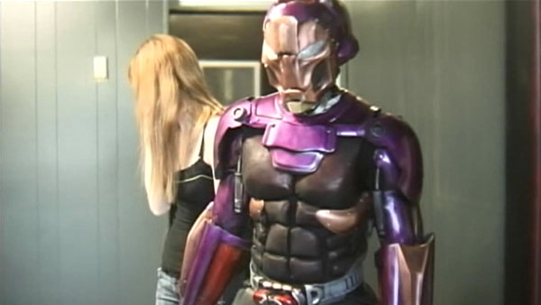 Là, vous vous dites peut-être qu'on y va un peu fort, et que c'est pas très gentil d'enfoncer un petit film innocent, qui au fond semble n'avoir d'autre tort que la stupéfiante maigreur de son budget. C'est le moment de préciser que Metal Man a le cul entre deux tabourets, à mi-chemin entre le navet putride et le gentil nanar sympathique. A vrai dire, le fait qu'il démarque aussi honteusement Iron Man le rangerait plutôt du côté du Business Plan hâtivement monté par une poignée de margoulins, que de l’œuvre naïve et maladroite d'un doux rêveur. Et quelles que soient nos richesses en indulgence pour les canards boiteux du 7ème Art, on ne peut lui passer cela. Co-production germano-ricaine tournée en Californie à San Fernando Valley - plus connue pour ses tournages de boulards que pour ses mockbusters miteux - Metal Man est une purge intégrale, une bouse absolue. Sur la fiche IMDB du film, un budget de 1 million de dollars est évoqué, ce qui paraît scandaleusement surestimé vu le semi-amateurisme de la chose. A mon avis il faut enlever au moins un zéro pour s'approcher de la réalité.