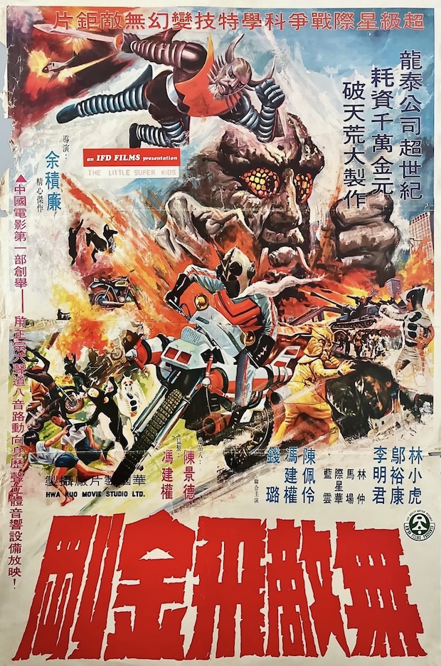 Mais qu’est-ce que je suis encore allé m’infliger… Sur le papier, ça s’annonçait pourtant plutôt bien : un rarissime tokusatsu taïwanais de 1977 (« ouééé ! ») exhumé par des fans qui ont déniché une antique cassette vidéo en Indonésie (« oooh ! »). À l’écran, je me retrouve avec un des trucs les plus cheap et mal branlés que j’ai pu voir depuis un bail. Une honte ! Absolue ! Et réjouissante aussi !