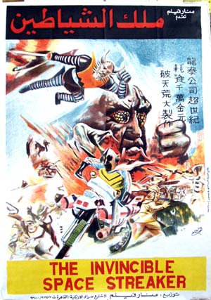 - Deux ICI sous le titre The Invincible Space Streaker. La première, présentée comme « uncut », dure 82 minutes et a des sous-titres anglais (certes approximatifs et tronçonnés sur les côtés à cause du recadrage, mais on s’en contentera). L’autre version n’a pas de sous-titres et ne dure que 68 minutes. Je n’ai pas poussé le sens du sacrifice jusqu’à comparer plan par plan les deux versions mais gageons que la version la plus courte a taillé dans les scènes de remplissage. Les deux versions sont en chinois mandarin (VO).