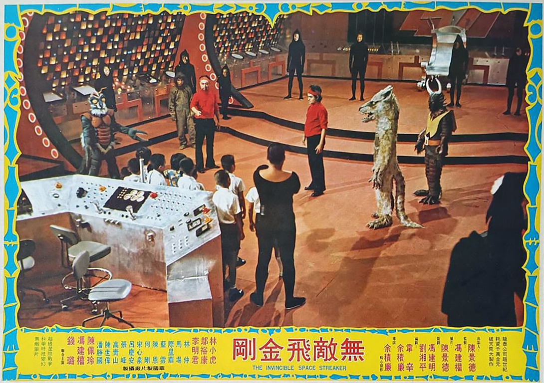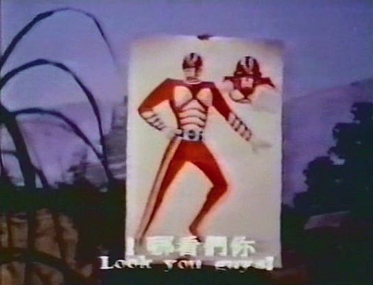 Pour un topo un peu plus complet sur le contexte commercial de l’époque, je vous renvoie vers la chronique de War God alias The Big Calamity mais en gros, dans les années 1970 on a les Japonais qui font des séries de super héros, puis les Chinois de Hong Kong qui copient les Japonais, puis les Chinois de Taïwan qui copient les Chinois de Hong Kong. Avec The Invincible Space Streaker (1977), on arrive vraiment en bout de chaîne puisque c’est un producteur taïwanais qui copie ses compatriotes qui copient les Hongkongais qui copient les Japonais. Cinématographiquement parlant, le résultat est du même niveau que ces copies de copies de copies de VHS, où on perdait en qualité à chaque duplication, avec une image de plus en plus dégradée, un son avec un souffle d’ouragan et des sauts de bande intempestifs. C’est donc l’histoire d’un cancre, qui copie sur un autre cancre, qui copie sur un autre cancre, en oubliant des phrases, en ajoutant des fautes, et surtout sans rien comprendre à ce qu’il copie.