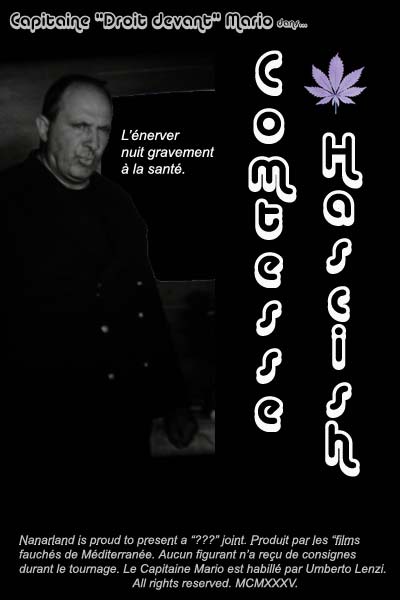 Bien qu'a priori inachevé (globalement, le film a bien un début, un milieu et une fin, mais il manque clairement plusieurs scènes de raccord), La Comtesse Hachisch demeure un exemple rare d'antique nanar, datant des années 1930 mais affichant tous les raffinements modernes. Sorte de pendant hexagonal à The Reefer Madness dont il est d'ailleurs contemporain (le film américain datant de 1936, peut-être même s'en est-il inspiré ?) et précurseur de Blood Freak par sa thématique (et sa nanardise), il nous permet surtout de découvrir l'incroyable Capitaine Mario, sa manie de ne jamais regarder en face les gens à qui il parle et ses répliques proprement inoubliables. Un grand coup de chapeau à la Cinémathèque Française pour avoir exhumé ce trésor, et pour avoir osé le projeter à une heure de grande écoute.