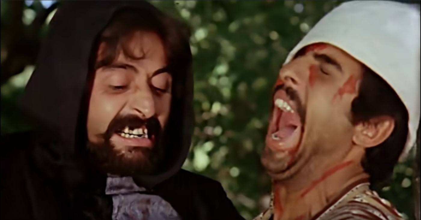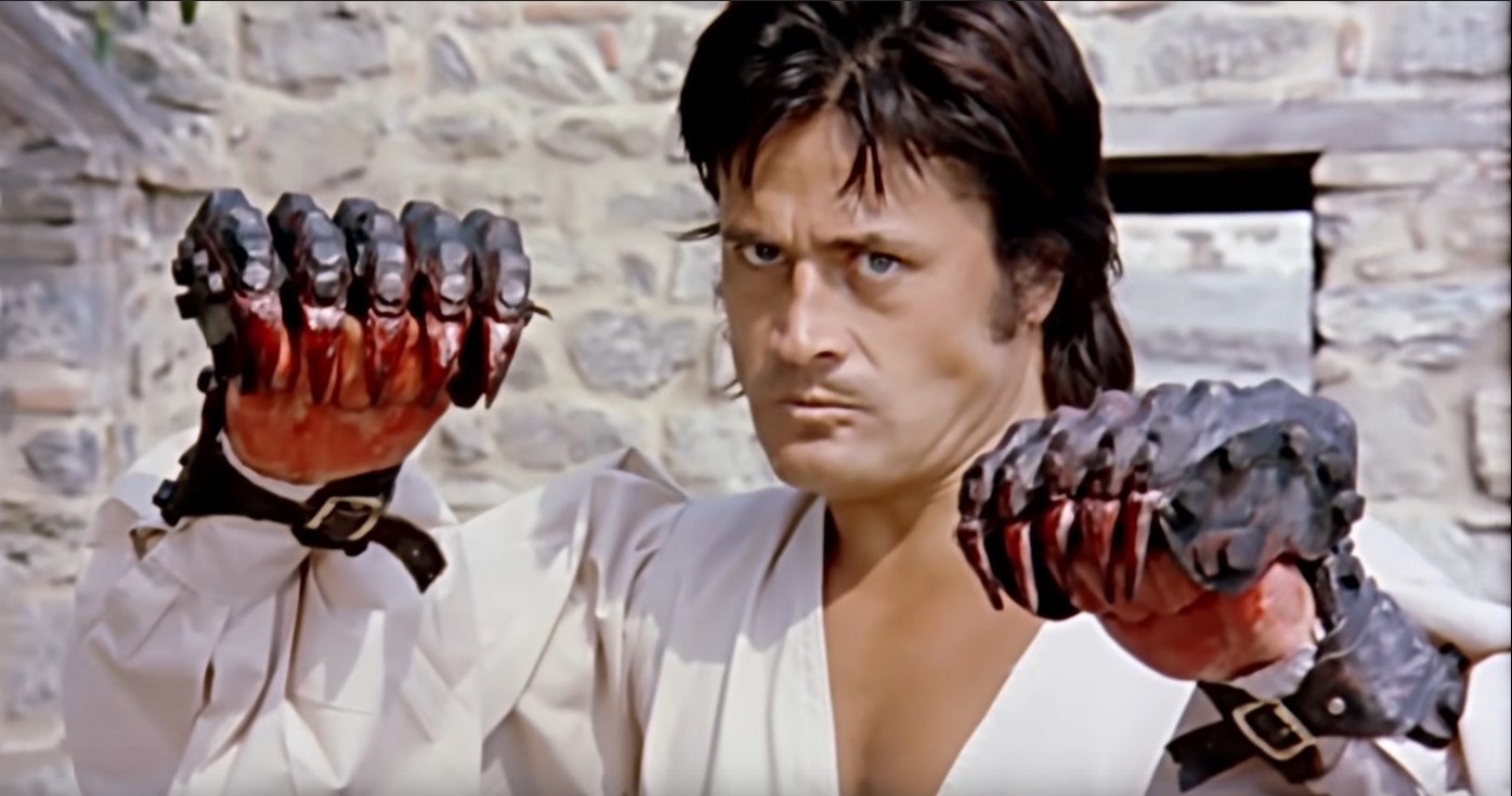 On nous sert également une scène assez réussie (très certainement inspirée de « Django » de Sergio Corbucci) où Cüneyt bloque une trappe par la seule force de ses bras afin que les soldats ne puissent pas rentrer. Le vilain moustachu, qui n’est pas méchant pour rien, lui balance de l’acide sur les mains. Cüneyt réussit à fuir mais il ne peut plus se servir de ses mains. C’est alors qu’il a une idée proprement géniale : il va se fabriquer des gants en fer en forme de pattes de lion. Ainsi il sera encore plus redoutable et pourra libérer ses amis, toujours entre les mains des méchants.