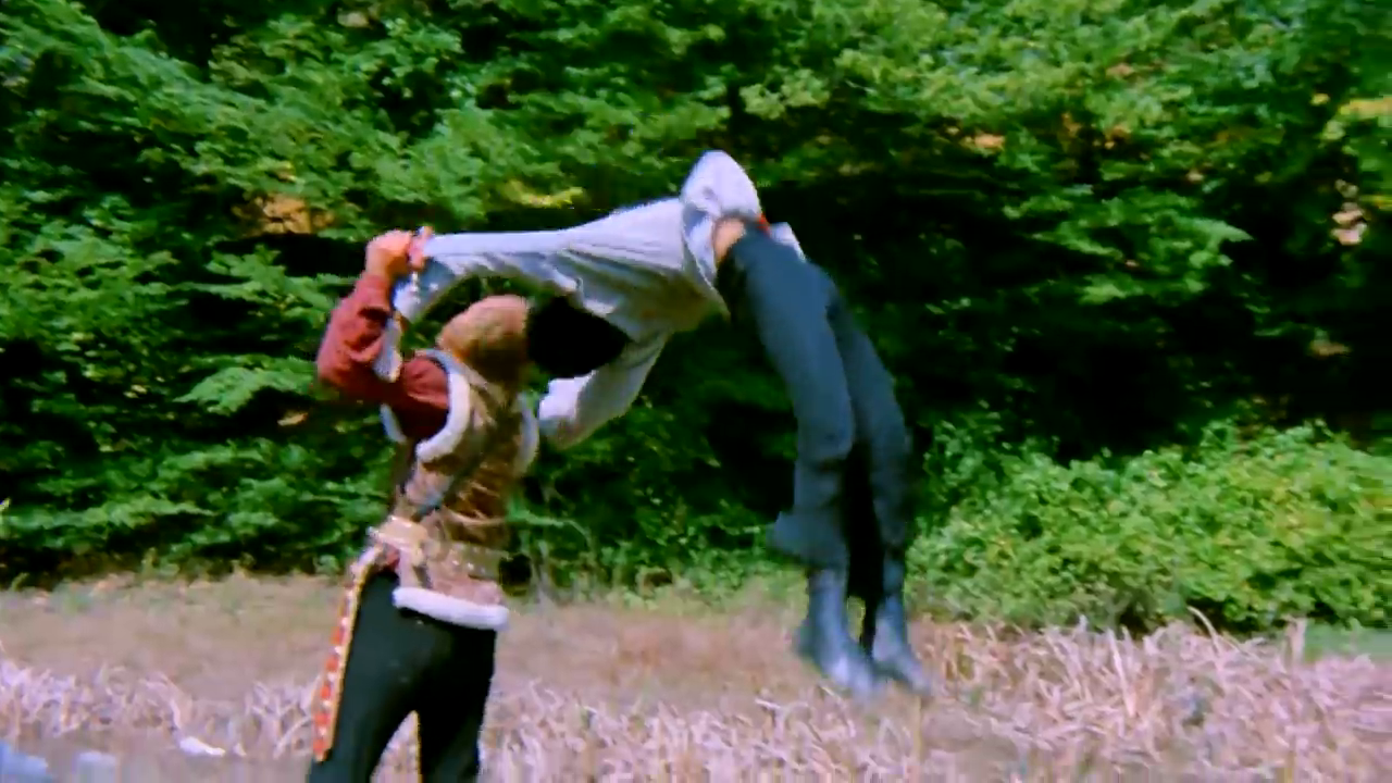 Débarque alors Cüneyt dans un tonneau qui roule, roule, roule si bien qu’on se demande ce qu’il peut bien faire là-dedans. En fait Cü-cü a tout compris : par les ouvertures du tonneau, il tire des flèches et dès qu’on l’attaque, il se protège en tournant le tonneau (voir l'extrait dans l'onglet vidéo de cette chronique).