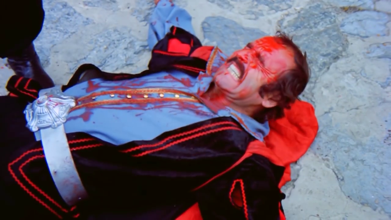 Après avoir bondi comme un cabri et égorgé quelques figurants (qui portent des capuches pour ne pas être reconnus, car chacun doit mourir environ 12 fois dans le film)...