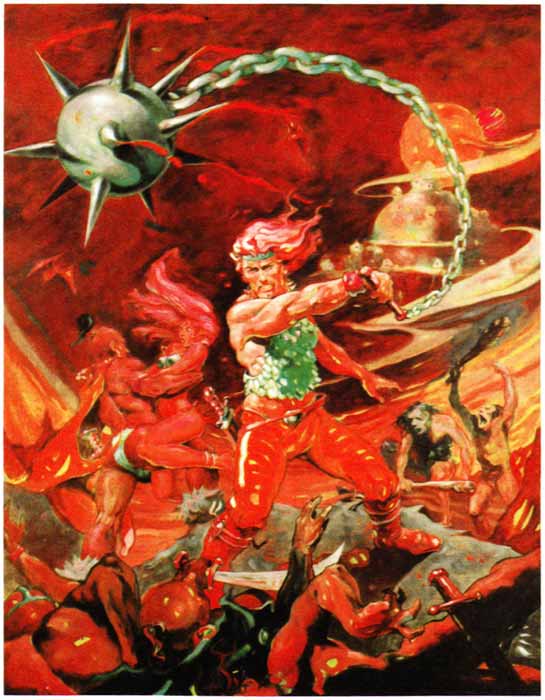 « A l'aube de la civilisation... Un adolescent et un formidable guerrier solitaire s'unissent pour affronter la puissance maléfique d'Ocron, la reine-sorcière des hommes-loups, et de ses effroyables alliés les hommes-fétus... Traqués dans la forêt ensorcelée, capturés par les hommes-taupes, réussiront-ils armés de l'arc flamboyant, à vaincre le mal et à libérer leur monde. Leur seule alternative : la Mort... ou la Conquête. »