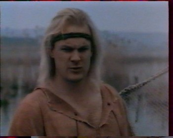 Mais le Dieu Thor, s’étant levé du pied gauche, décide un jour de venir le tuer. Notre héros est occis d’un coup de lance, tandis que sa précieuse épée du Saint-Graal est brisée par l’arme divine. Ben alors, y’a plus de film ??? Que nenni, car grâce à la protection de l’Amazone Dejanira (tiens, un peu de mythologie grecque, maintenant !), la jeune reine s’est enfuie, emmenant avec elle son fils, qui porte le même nom que le père. La reine demande de l’aide au gnome-sorcier Grindl, mais ce vil personnage, plutôt que de reforger l’épée, fait boire à la fugitive une potion aphrodisiaque pour abuser d’elle.
