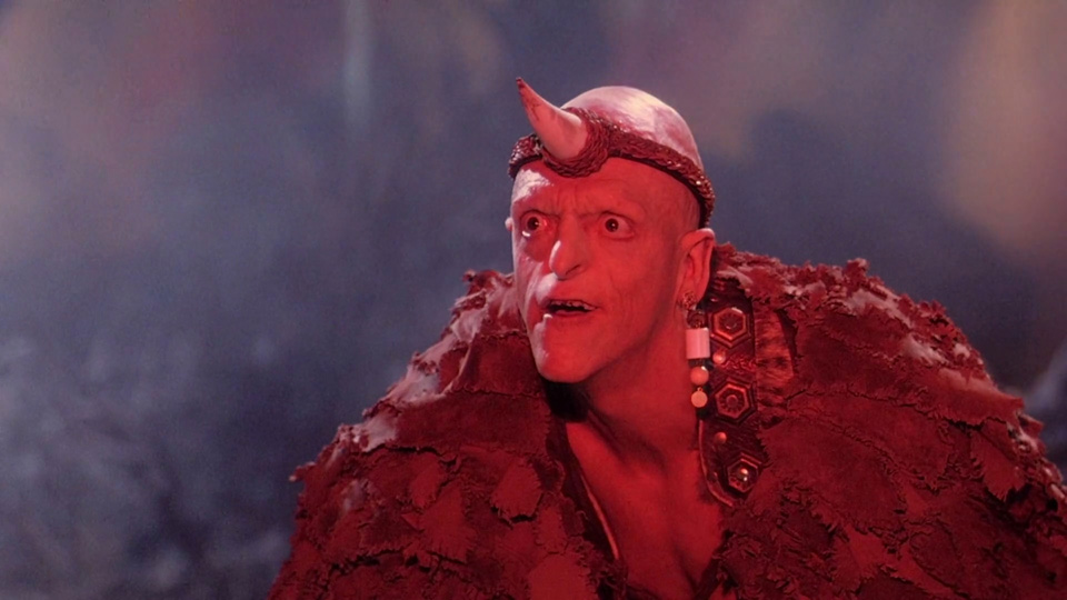 Grimaçant et grognant comme des gorilles bourrés à la bière, les deux bestiaux font les imbéciles avec un tel naturel que ça en devient troublant… et de fait ils ne composaient absolument pas, puisque Deodato repensa tout le film en fonction de leur vraie personnalité, transformant ce qui devait être une heroic-fantasy sérieuse en semi-parodie. Je dis semi-parodie, car la partie « aventure » est censée être sérieuse… et c'est là que le bât blesse, car le ratage est ici total, sauf à se baser intégralement sur le quotient nanar de la chose. Pas une situation, pas un costume, pas un acteur, pas une note de musique (Mon Dieu ! Cette bande-son…) qui n'échappe au ridicule le plus réjouissant.