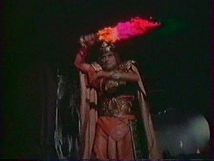 Sur l’île, on a droit au plus infect filtre vert jamais vu pour figurer l’aspect terrifroyable des lieux. Hercule fonce bille en tête, tactique qu’il maîtrise bien à défaut d’en connaître une de rechange. Sa fiancée va être sacrifiée dans un volcan, lui casse la tête façon Bud Spencer / Terence Hill aux malheureux figurants. Sybill Danning essaie de le charmer, peine perdue. Nous avons droit à une grande séquence de combat au cœur d’un, hum hum, volcan digne de celui d’ « Alien la Créature des Abysses » entre Minos (qui soit dit en passant a la faculté d’aller sur la planète carton-pâte des trois Dieux) et Hercule, avec en final de magnifiques explosions de maquettes, effets spéciaux en carton et lumières qui font bip-bip. Youpi, c’est fini, bonne nuit les petits !