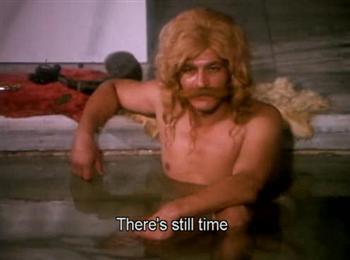 En bon peplum, Tarkan contre les Vikings comporte aussi son lot de craignos monsters rigolos. Enfin ici, il n’y en a qu’un mais il est tellement bien qu’il compte facilement double ou triple ! La pieuvre géante égarée en mer de Marmara que les Vikings se sont choisie pour emblème fait irrésistiblement penser à Ed Wood. Sorte de baudruche flottante pas plus grande qu'un matelas pneumatique, elle nous est généreusement montrée sous tous les angles et en gros plan au cours de scènes de sacrifice épuisantes pour les zygomatiques. Je l’avoue : j’ai craqué sur le Kraken.