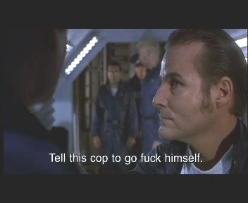 Cela dit, on se moque, mais fallait bien payer les comédiens. Prenez Christophe Lambert par exemple : il n'est pas venu pour rien, même si son jeu d'acteur aurait quand même pu rebuter les investisseurs. Bien qu'à certains moments, il semble très concerné et se donne à fond pour rendre crédible son personnage, ailleurs, le naturel reprend le dessus et Christophe fait preuve d'une mono-expressivité carabinée, comme dans cette scène le montrant se faire très ouvertement draguer par une charmante demoiselle.