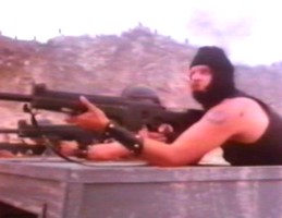 Le héros (le karatéka Richard Norton) et son fusil moche. La nuit, il devient le sosie de Luc Besson.