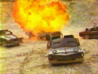 Sur fond d’images de voitures traficotées (on les a peintes en noires) roulant à toute berzingue et de bidons d’essence qui explosent dans des paysages désolés (une lande désertique ou, par défaut, une carrière de sable, pour donner une couleur « après la bombe » au film), une voix off jouant dans les graves nous annonce avec de savoureuses intonations hiératiques qu’ « Au lendemain de la grande guerre nucléaire, les radiations dévastèrent la Terre. Il n’y eut que peu de survivants. Recherchant désespérément nourriture et sécurité, ils se regroupèrent, formèrent des gangs ou inventèrent une nouvelle vie sociale. L’un des groupes resta fidèle aux lois et à l’ordre établi et créa la Ligue Alpha, une société démocratique. La ligue ne tarda pas à être attaquée par une bande de marginaux. Mais l’agression la plus meurtrière vint de l’intérieur... des traîtres au sein de la Ligue ! »