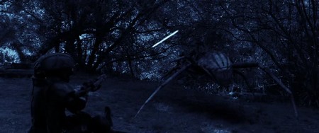 A la différence de certaines productions The Asylum, qui manquent quelque peu de rythme et de charme, ou de « Transmorphers », qui enquillait pas mal de scènes de blabla avant de nous offrir ses merveilleux effets spéciaux à deux balles, « Alien vs Hunter » se distingue par une action assez rondement menée, qui ne laisse en tout cas pas trop le temps de s’ennuyer, jusqu’à une fin littéralement incompréhensible et ahurissante d’absurdité. Ajoutons que bien que le film soit censément basé sur l'affrontement des deux monstres, on verra relativement peu les extraterrestres se friter, l'"Alien" passant l'essentiel de son temps à bâfrer les humains, et le "Hunter" à bayer aux corneilles, ce qui ajoute à l'idiotie de l'ensemble. Production idéale pour un marché du DVD à bas prix, « Alien vs Hunter » est le type même de film que l’on peut regarder d’un œil distrait en repassant son linge, sans rien trouver à y redire, mais qui fournissent du bon matériel pour les collectionneurs d’idioties. A voir sans attendre le nanar du siècle, mais pour se vider gentiment le cerveau.