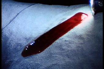 (à ce moment là on voit le blob sortir de l'évier. Attention : effet spécial ! Il s'agit d'un pauvre paquet de gélatine rouge qu'on a fait couler dans le siphon d'un lavabo, le tout filmé à l'envers pour qu'on ait l'impression que ça remonte. On entend des hurlements puis on voit le gros plan de l'avant bras du coiffeur barbouillé de confiture de groseille. Et puis... euh ben c'est tout ! Rendez-vous dans un quart d'heure pour la prochaine scène "gore" !).