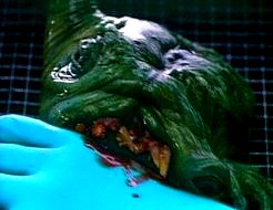 Il semble que le budget ait fondu dans les animatronics, longs et coûteux à animer, et que le film ait fini par être bâclé n'importe comment avec des chaussettes en latex, de la gelée et des bestioles animées en stop motion lamentable. D'ailleurs, à le voir comme ça, on sent que l'ambition était de faire un truc moitié à la "Alien" moitié série B volontairement rigolote comme « Flic ou Zombie » avec des monstres marrants mais bien faits. On trouve par moments quelques beaux efforts dans ce sens avec le crapaud cyclope rigolo, la plante carnivore mutante ou le mutant qui bouffe des poissons rouges dans l'aquarium, mais faute de moyens, tout ça a viré au n'importe quoi. Les têtes de monstres ne sont pas raccord, et quand on ne voit pas seulement la tête (seule partie du corps des bestioles à être mécanique) c'est carrément le gros ratage. L'animation est du niveau des nanars 60's comme « Les Monstres de l'île en feu », guère mieux. Et comme il est dit dans la chronique, l'espèce de jargon pseudo-scientifique débité quasiment en continu finit de nanardiser le tout. C'est vraiment le genre de film qui laisse perplexe.