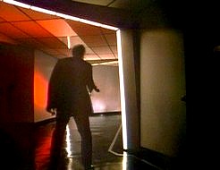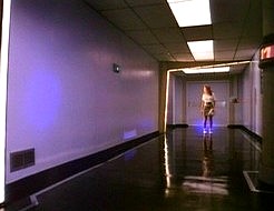 L'alarme retentit (par alarme, entendez UNE grosse lumière rouge dans un couloir). Le garde se précipite (laissant l’entrée sans surveillance au passage) dans les couloirs vides du labo (nous y reviendront aussi) et là, c’est le drame. Devant la salle où vient de se dérouler l’incident, un zombie tombe sur le pauvre policier avant de s'immobiliser. Sans s’inquiéter davantage, le garde entre dans la pièce et se fait évidemment tuer par un tentacule ressemblant étrangement à un câble électrique agité par un assistant laborieux.