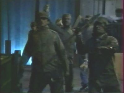 Ceci devrait sans nul doute vous rappeler un tout autre film: "Robowar". Ou peut être "Predator", tout dépend de vos références. Mais ne vous attendez pas en une vague copie conforme. Car si le film reprend les grandes lignes du métrage de Bruno Mattei, il va assez vite s'en éloigner pour livrer une trame beaucoup plus originale. Dès lors commence à se poser un sérieux problème d'éthique pour le rédacteur que je suis : la succession de twists renversants qui composent ce bijou se trouvant être l'un des gros points forts du film, ne pas les évoquer tiendrait de la faute professionnelle. Mais pour autant, vous divulguer chacune des subtilités de l'intrigue serait aussi fastidieux que mal venu, le charme de la découverte devant être préservé. Dans ce cas, tel un centriste de la chronique, jouons la carte du compromis en évoquant un seul retournement de situation, à titre d'exemple. Celui-ci interviendra vers la dernière demi-heure, lorsque les survivants du groupe arriveront dans une zone infestée par un virus suite à des expérimentations hasardeuses de l'armée (synonyme de pléonasme dans le nanar). Et soudain, boum badaboum, plus de délinquant robotisé à l'horizon : ce sera carrément une armée de mort-vivants qui viendra en découdre avec nos héros, le tout avec un sens de la transition ayant de quoi laisser pantois le plus blasé des spectateurs. Cela dit, le plus stupéfiant reste que cette intervention de zombies est sans doute le rebondissement le plus crédible du lot, la suite de l'intrigue semblant avoir été écrite par une Agatha Christie sous acide. Aux vues des images, il est même permis de se poser des questions et se demander si Norbert savait ce qu'il faisait ou s'il improvisait au jour le jour. La seconde option se défend, si l'on en juge par la profonde crétinerie de certains dialogues, visiblement improvisés, et faisant de notre guerrier fugitif tantôt un alien, tantôt un robot ou un cyborg, sans aucune cohérence scénaristique.