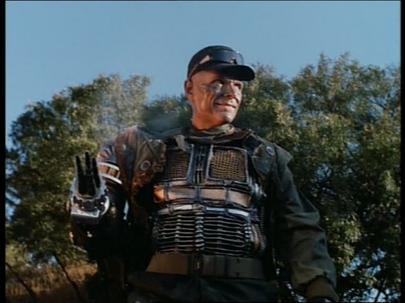 Côté habillage des cyborgs, on a ressorti les prothèses en plastique moches et les airs constipés qui faisaient tout le sel des robots du premier numéro. Le laboratoire est d’ailleurs le même que dans le premier, à peine remanié pour nous faire croire qu’on est dans un centre militaire de pointe. D’après les savants fous responsables du projet, les cyborgs seront équipés de "kevlar thermal" imperméable aux balles et capable de résister à une température de 6000°, rien que ça (ce que le scénar s’empressera bien vite d’oublier puisqu’une bonne partie d’entre-eux sera désintégrée à coups d’explosions à la fin du film.)