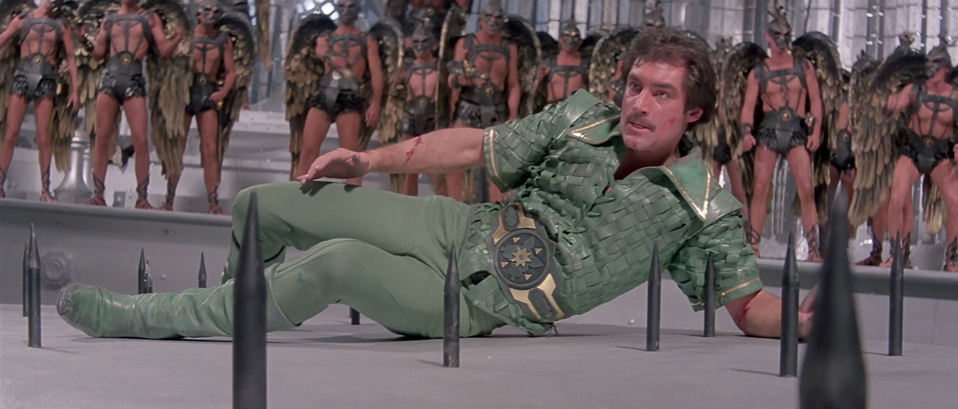 D'entrée de jeu Flash parviendra à abattre les gardes d'élite d'un empereur capable de changer le climat d'une planète comme on jouerait avec une gameboy, en leur balançant des oeufs (?). Ce haut fait d'arme lui attirera les faveurs de la fille de l'empereur qui n'est autre que Ornella Muti. Elle lui donnera l'opportunité de rallier à lui les factions dissidentes de l'empire (dont une dirigée par Timothy Dalton en collants verts, véritable sosie de Errol Flynn), et de s'initier à l'art délicat de la télépathie (un peu comme le téléphone, mais sans combiné).
