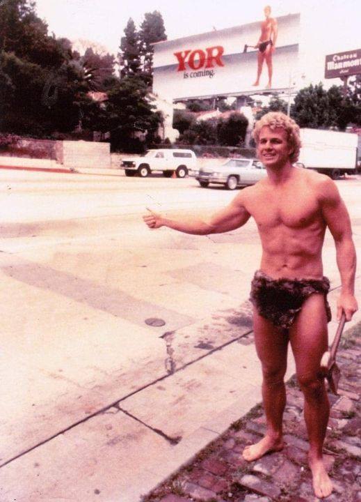 D'entrée, le film nous met dans l'ambiance avec sa merveilleuse chanson « Yooooor's world ! / He's the man ! / Yooooooor ! » (composée par Guido et Maurizio De Angelis : rendons à César que ce qui est à Nanar), accompagnant les bonds de cabri du niaiseux Reb Brown qui parcourt les montagnes rocheuses, sa hache de pierre à la main. Rasage impeccable et brushing parfait, Yor est un héros bon aryen à peu près aussi crédible en pleine préhistoire que John Wayne en guerrier tatar (le fait que ce dernier choix de casting a vraiment été fait nous aide à relativiser la notion de logique au cinéma). Notre héros lutte dès les cinq premières minutes contre un dinosaure en polystyrène dont le niveau de crédibilité va au-delà de nos plus folles espérances : outre un maquillage ridicule que n'aurait pas renié un élève de CM2 en cours d' EMT, nous vous conseillons fortement de regarder attentivement la scène où le dinosaure se "rue" à 3 Km/h sur Yor ; profitez-en pour admirer les mouvements très réalistes du monstre, apparemment monté sur rails. On peut nettement distinguer sous la "peau" du dinosaure le mécanisme primitif servant à le mouvoir.